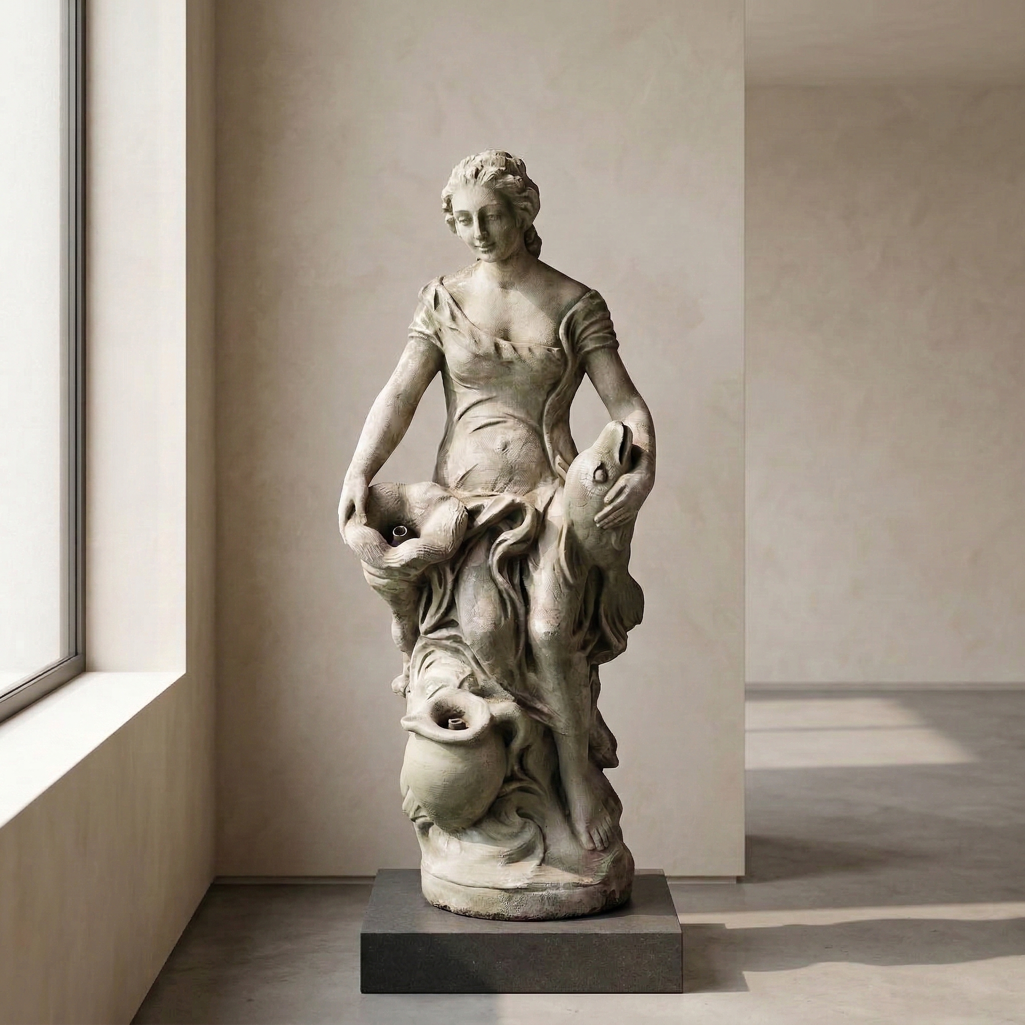 Wasserspeier Beton Frau mit Fisch 1,00 m