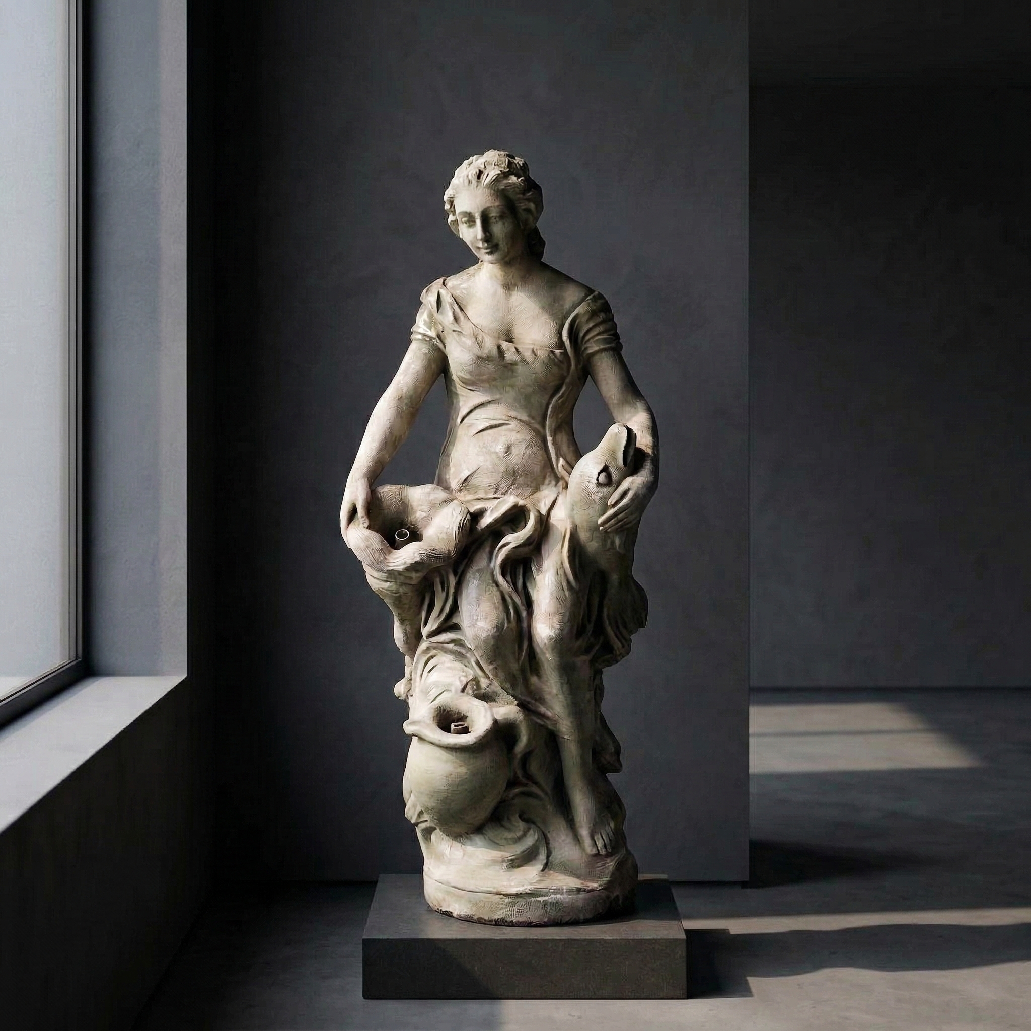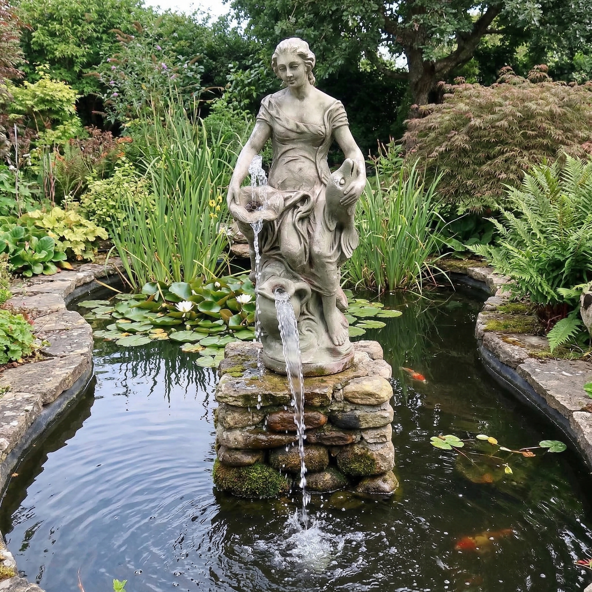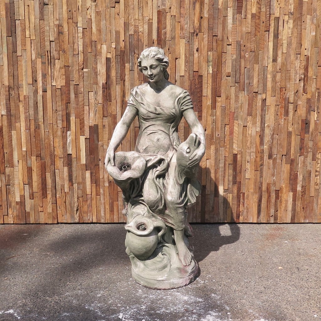 Wasserspeier Beton Frau mit Fisch 1,00 m