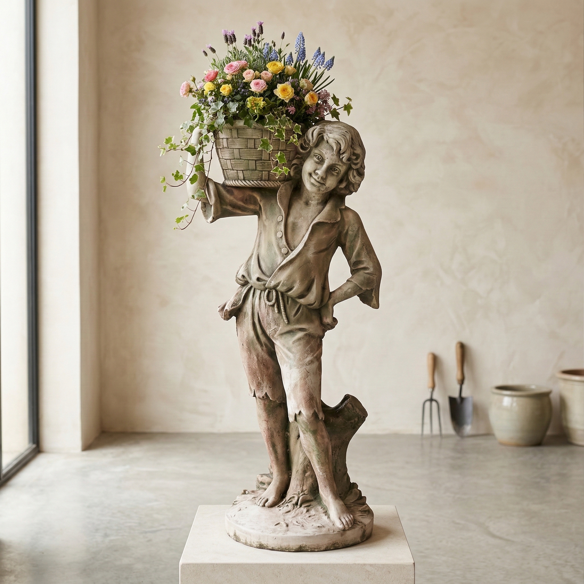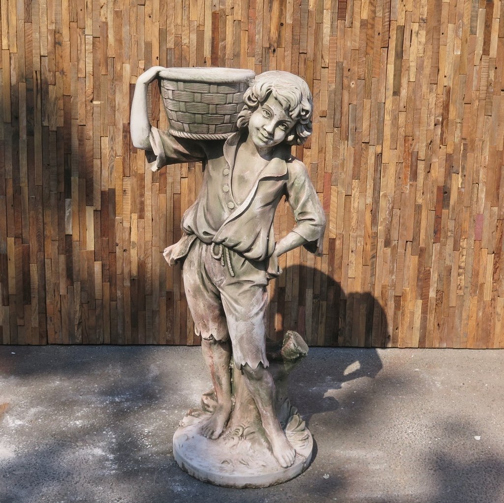 Wasserspeier Beton Junge mit Korb 1,10 m