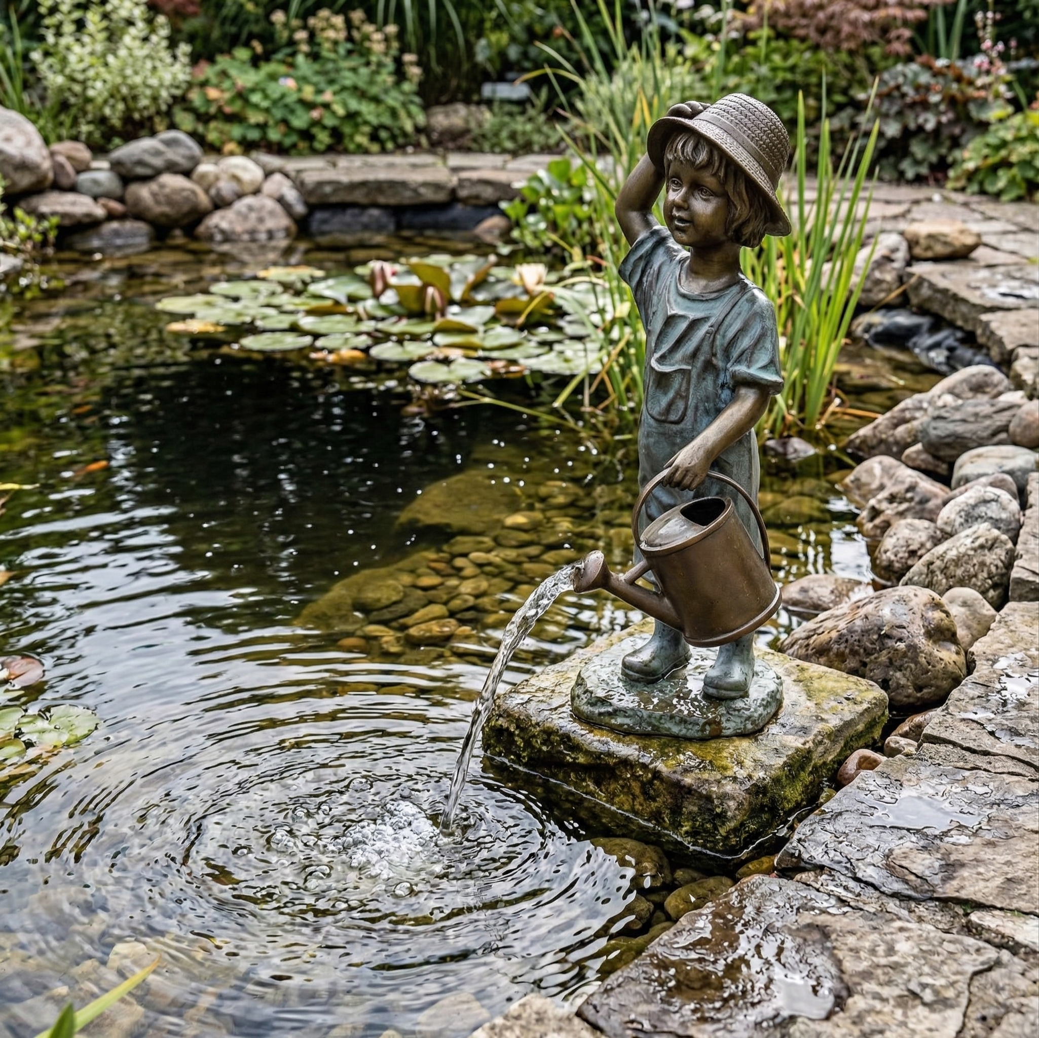 Wasserspeier Kind mit Gießkanne Bronze 0,70 m