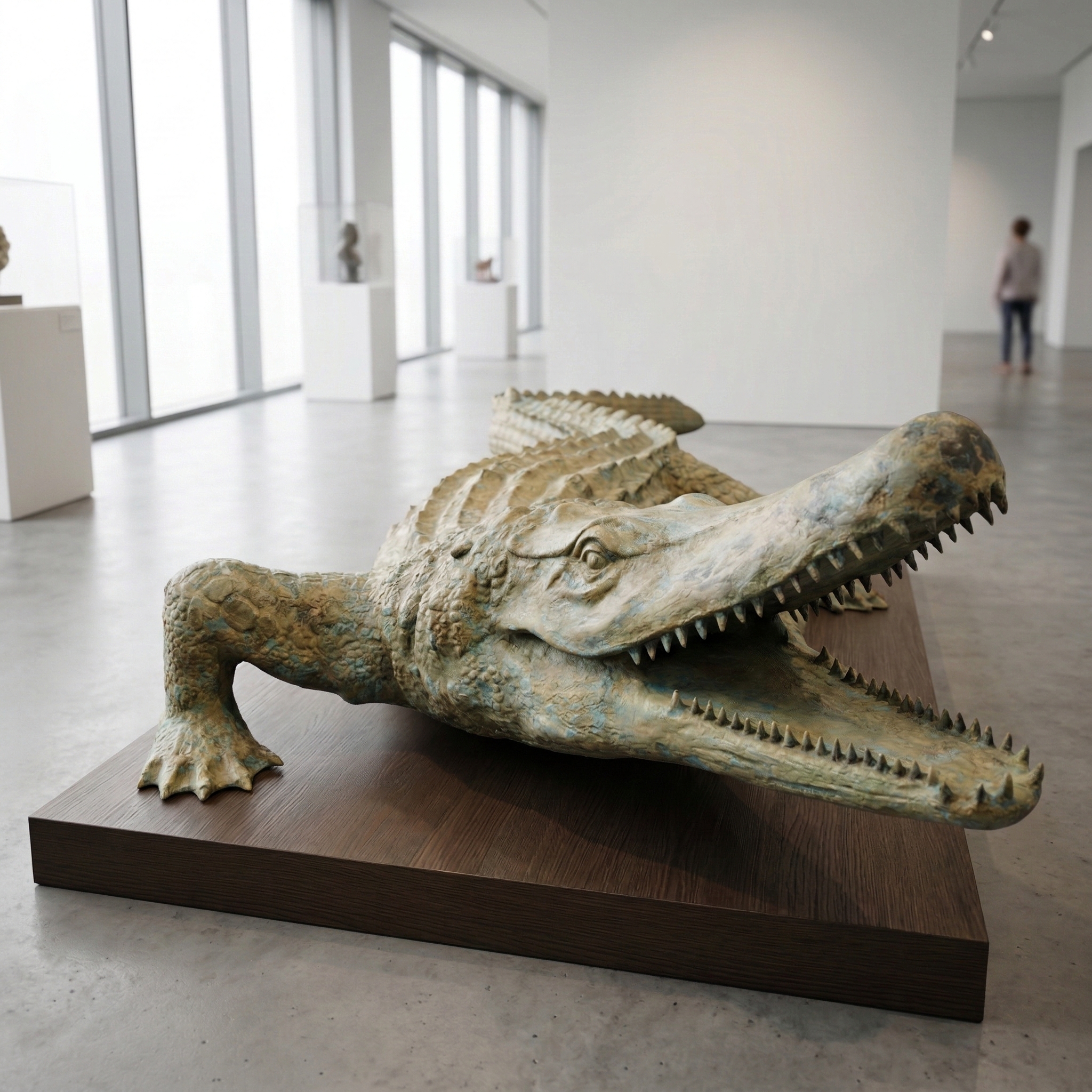 - Innenbereich: Auch in Innenräumen, wie einem Wintergarten oder einer Eingangshalle, wird dieses Bronze-Krokodil zum stilvollen Dekorationsstück.