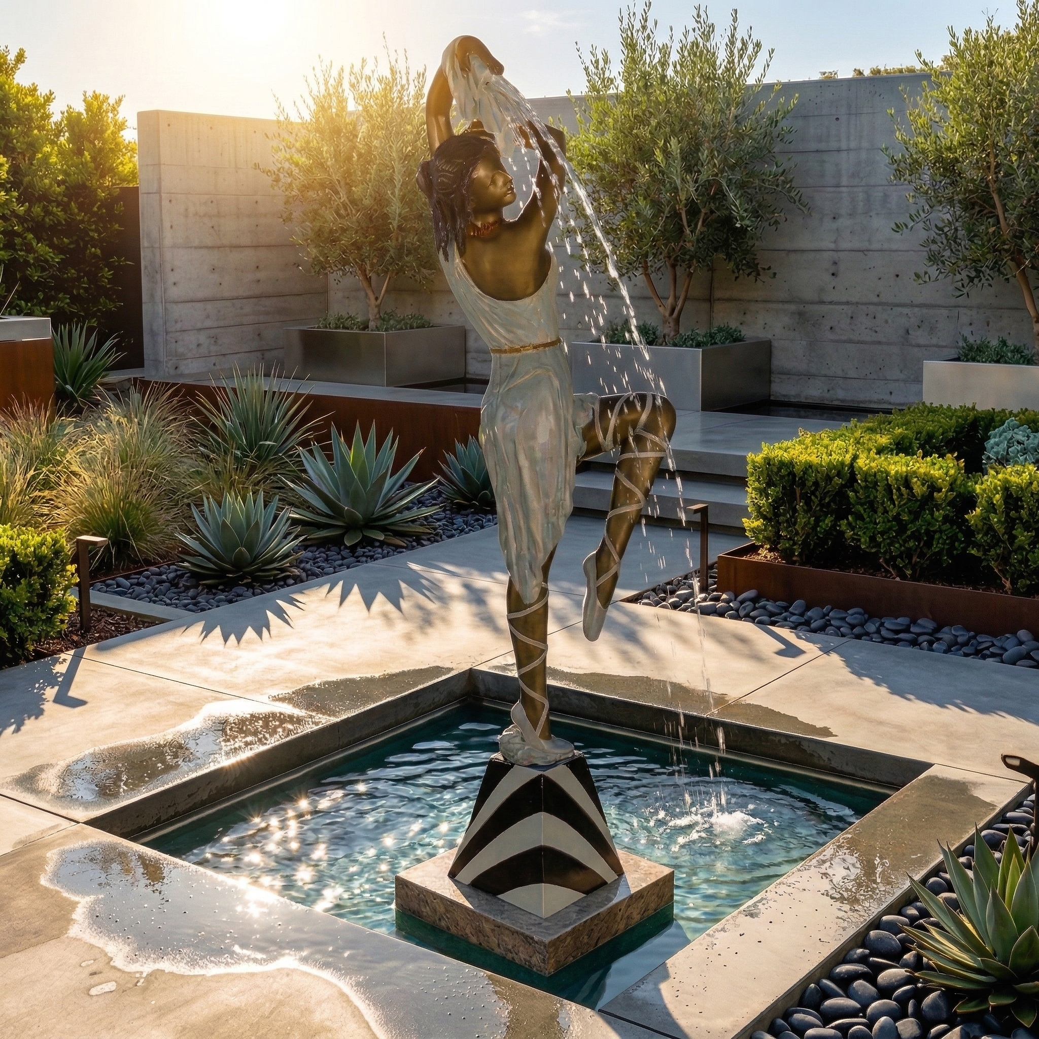 Formschöner Wasserspeier in Form einer Ballerina hergestellt aus Bronze.