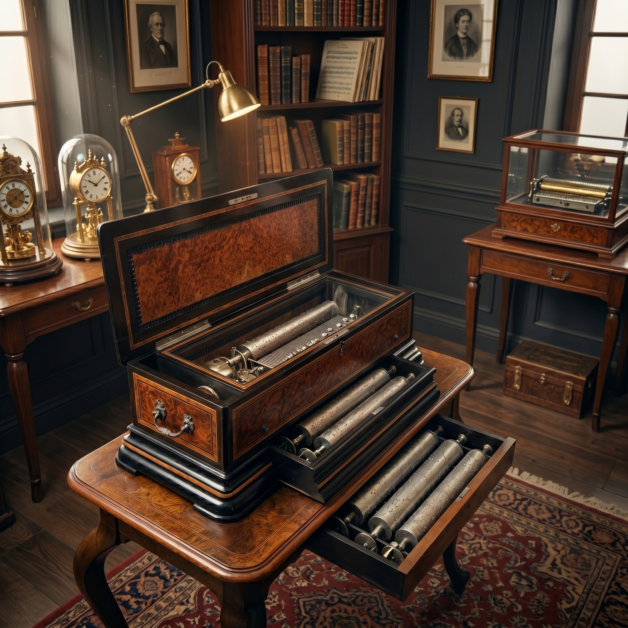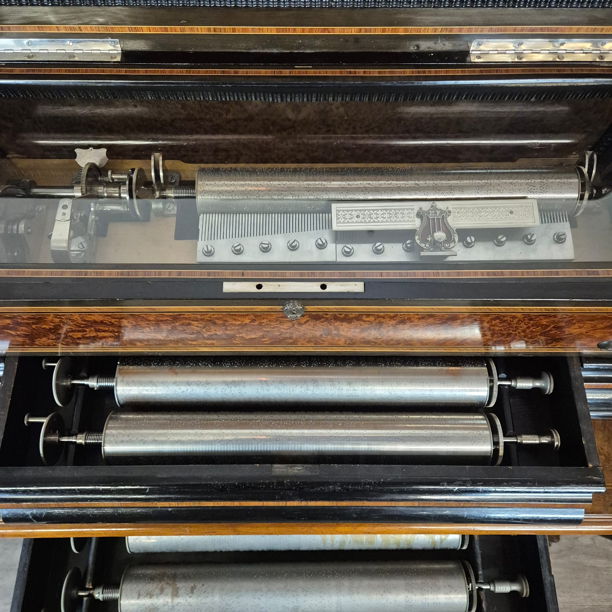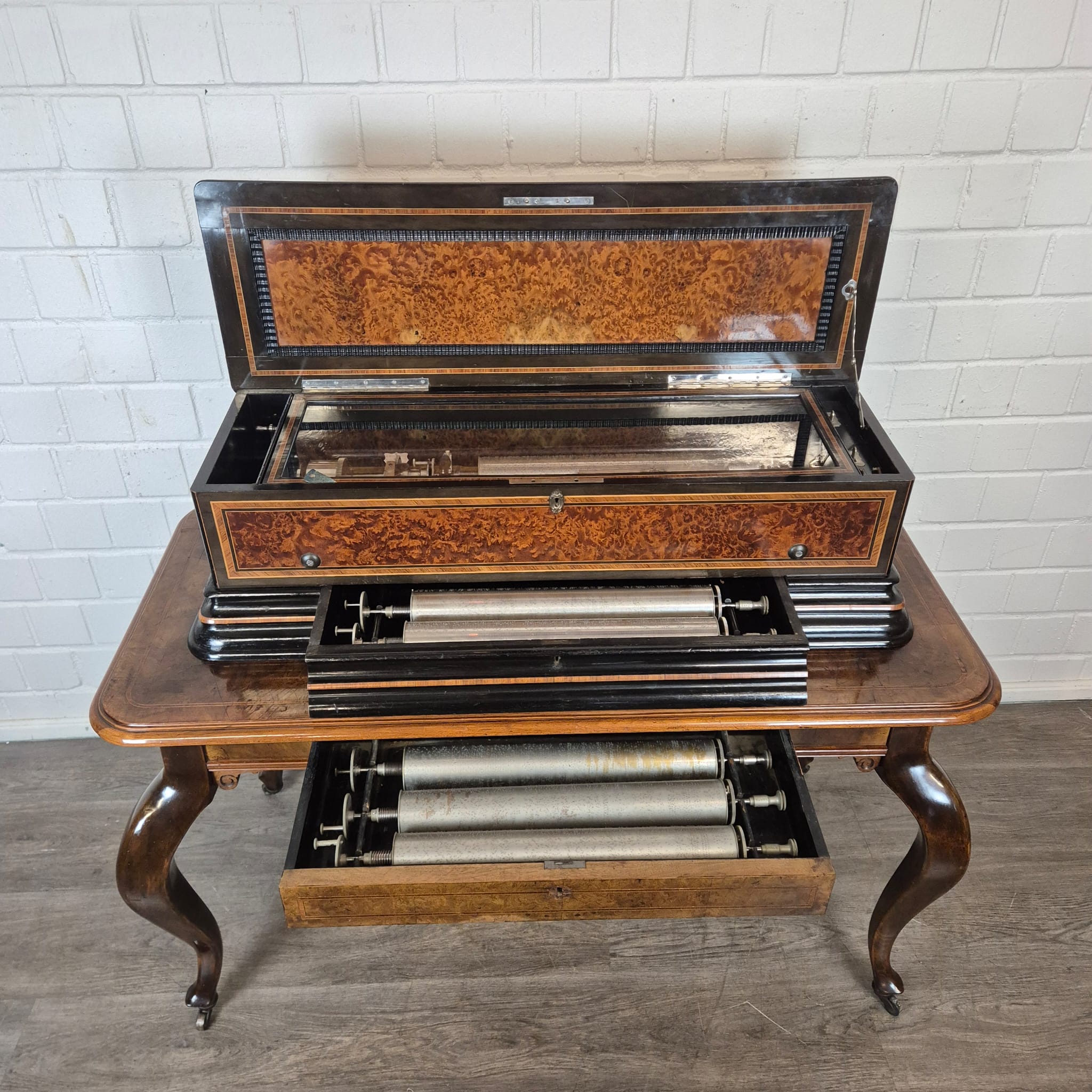 Fazit: Ein seltenes Sammlerstück in einer Konfiguration, die heute nur noch selten im Handel zu finden ist. Die Kombination aus der technischen Brillanz von Mermod Frères und dem Erhalt des kompletten Walzensets inklusive des originalen Tisches macht dieses Objekt zu einer erstklassigen Investition für Liebhaber mechanischer Antiquitäten.