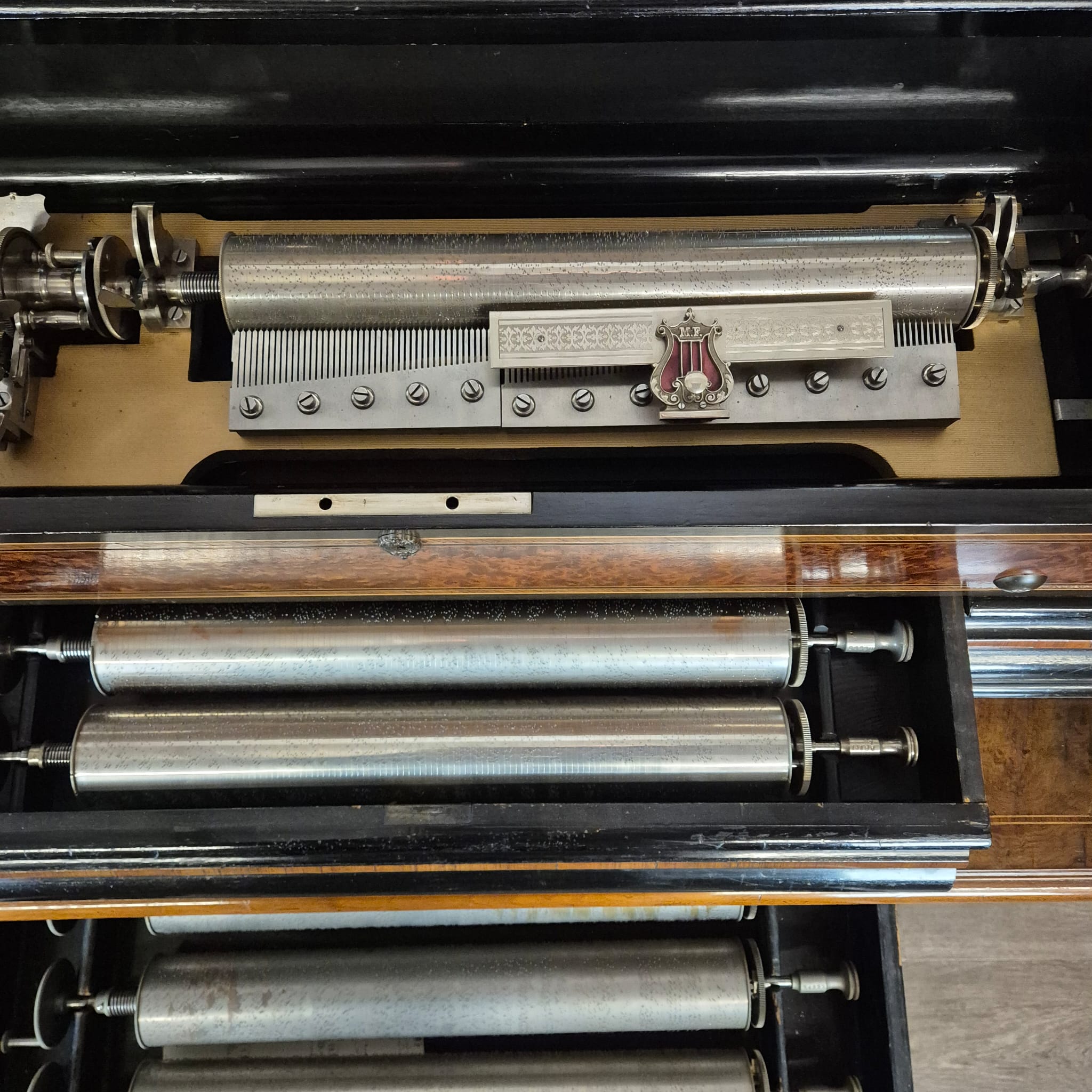 Dank der sechs beiliegenden Walzen verfügt dieses Instrument über ein enormes Repertoire, welches die gesamte Bandbreite der damaligen Unterhaltungsmusik – von klassischen Opernarien bis hin zu populären Tänzen des 19. Jahrhunderts – abdeckt.